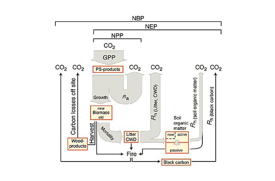 Na početku teksta je šema mehanizma vezivanja i otpuštanja ugljenika u šumskom ekosistemu.