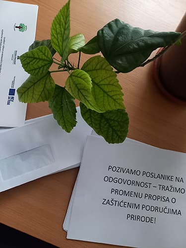 Svaki od ispitanika osim karamel bombone dobio je i spremljeni koverat sa markicom u kojem se nalazi zahtev namenjen Odboru Skupštine Srbije za zaštitu životne sredine koji glasi: „TRAŽIMO PROMENU PROPISA O ZAŠTIĆENIM PODRUČJIMA PRIRODE“.
