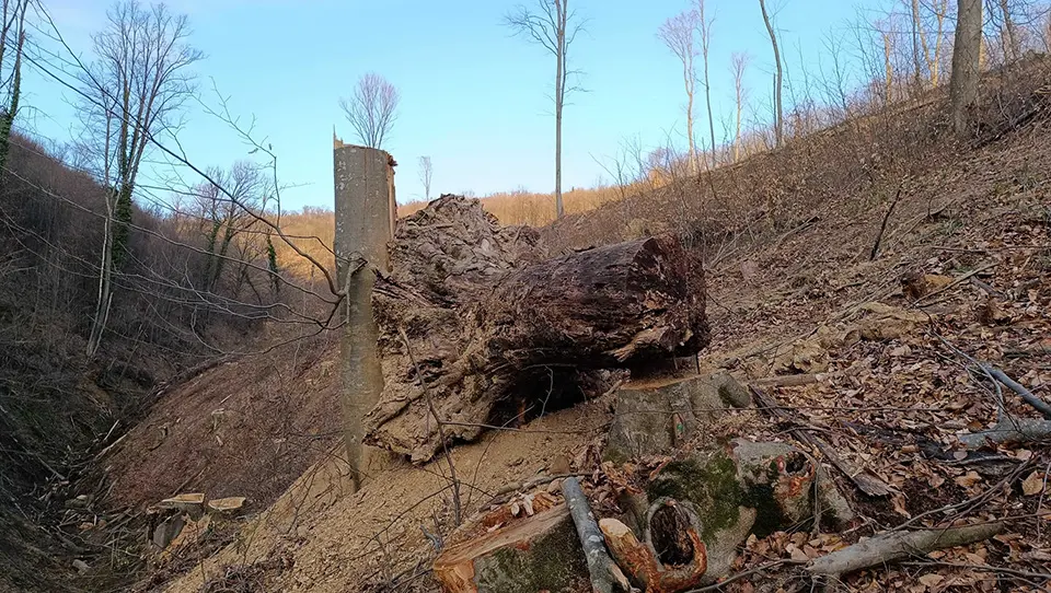 - U odseku „a“ površine 5,85 ha je urađena potpuna seča izdanačke bukove šume stare 117 godina. U OGŠ je planirana seča pod šifrom 41 „pripremni i oplodni sek“ i to u I polurazdoblju, A NE seča pod šifrom 43 „pripremni, oplodni i završni sek“, ili seča pod šifrom 45 „oplodni i završni sek“ u II polurazodlju 2022-2026. Dakle, radovi navedeni u Planu seča obnavljanja, su već obavljeni u periodu 2017-2022. godine i nikakve seče dalje nisu smele da se vrše.