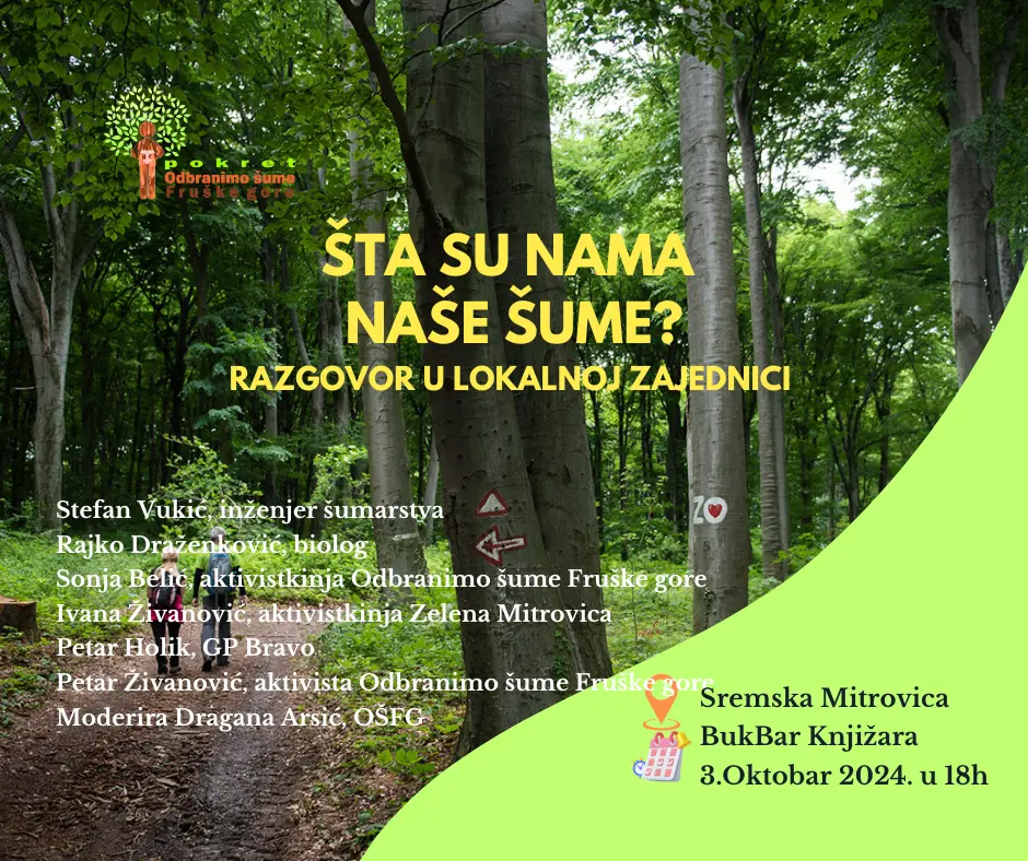 Udruženje za zaštitu šuma i Pokret Odbranimo šume Fruške gore održali su u Sremskoj Mitrovici prvi u nizu razgovora o lošem upravljanju šumama u Srbiji.
