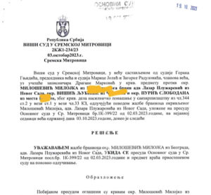 Viši sud u Sremskoj Mitrovici je uvažio žalbu jednog od trojice okrivljenih za nasilničko ponašanje prema Petar Živanović za krivično delo iz čl. 344. Razlog je „bitna povreda krivičnog postupaka koja dovodi u sumnju utvrđeno činjenično stanje“. Žalba se automatski odnosi i na drugu dvojicu okrivljenih jer je u pitanju nasilničko ponašanje u saučesništvu.